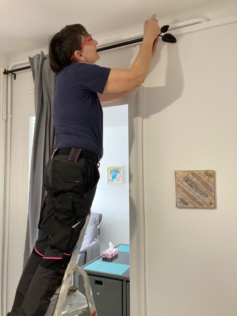 Pose d’une moustiquaire fenêtre de chambrePose d’une moustiquaire fenêtre de séjourPose d’une moustiquaire fenêtre de salle de bainPose d’une moustiquaire fenêtre de WCPose d’une moustiquaire devant portePose d’une moustiquaire devant portePose de tringle à rideau installation d’un rideau coupe bruitPose d’une grande étagère à Ozél’artPose d’étagères dans le salonDans la salle de bain et un miroirPose d’une étagère dans un placardPose d’une rampe d’escalierDécoupe d’un plan de travail à la bonne dimensionAjustement du plan de travail sur le meuble à tiroirsInstallation d’étagères dans un placardAvec une tringle solide pour suspendre les vêtementsPose du rideau devant le placard : pratique et esthétique Fabrication de stèles d’expositionDécoupe des planchesajout de tasseaux en croix4 stèles démontablesDécoupe du tissu des storescouture du storepose du storePose de 3 stores intérieurentretien climDémontage d’une tête de litTout est démonté proprementMontage d’un autre sommier et pose d’un paravent comme nouvelle tête de litRéaménagement de l’autre chambrePose d’attaches volets avec crémaillèremontage d’une table basse relevableInstallation d’un brise vue de 10minstallation de 500 attaches !