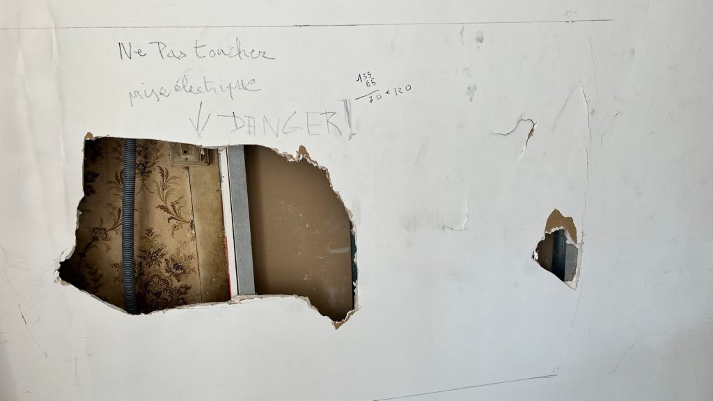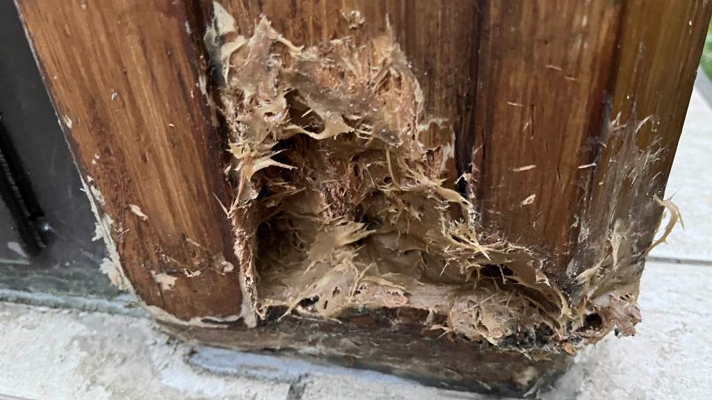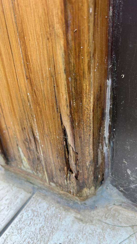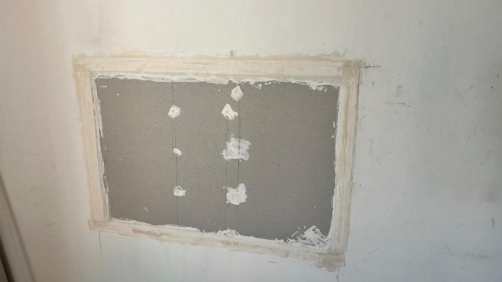 Poutre de véranda pourrieextraction de tout le pourrimastic avec une résine en plusieurs passesponçagePlaco troué avantDécoupe du placopose d’un nouveau panneauBande à joint et enduitplaco et mur repeintescalier nez de marche et carreaux cassés par le gelMortier pour fixer les carreaux qui bougeaientescalier aprèsnez de marche réparéDégagement des carreaux qui bougentEnlèvement de la colle restanteMortieret jointsmise à niveau d’un trou de câble téléphoniquepose d’une porte de trappePose de tuiles sur muret
